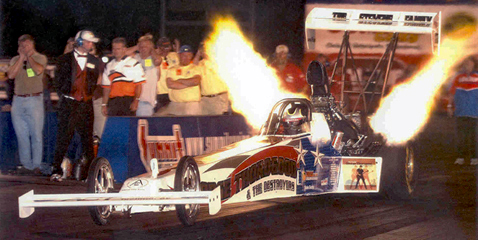 ![]() Tim driving the Stevens Family Top Fuel Dragster |